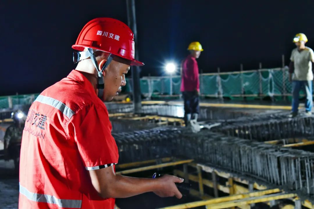 繼續(xù)前進,抓好復(fù)工復(fù)產(chǎn) 在做好搶險救災(zāi)一線后勤保障工作的同時,楊帆也積極投入到復(fù)工復(fù)產(chǎn)中,及時編制復(fù)工復(fù)產(chǎn)專項施工方案,組織進行震后隱患二次排查和檢測,確保項目部盡快按下“啟動鍵”。9月15日凌晨1點,大杉樹樞紐互通C匝道第1聯(lián)預(yù)應(yīng)力現(xiàn)澆連續(xù)箱梁完成混凝土澆筑,標(biāo)志著瀘石TJ10項目部復(fù)工率達100%。一直堅守現(xiàn)場的楊帆眼里布滿紅血絲,但他很興奮,“經(jīng)過這次地震的考驗,大家更有拼勁、沖勁、干勁了,接下來我們會加快腳步、全力沖刺,確保完成全年生產(chǎn)任務(wù)!” “我是四川路橋人,是道路建設(shè)者、守護者,哪里有困難、哪里最艱辛,我就去哪里!”楊帆繼續(xù)在搶險救災(zāi)和生產(chǎn)建設(shè)一線發(fā)光發(fā)熱,以實干擔(dān)當(dāng)詮釋四川路橋人的責(zé)任和擔(dān)當(dāng)。